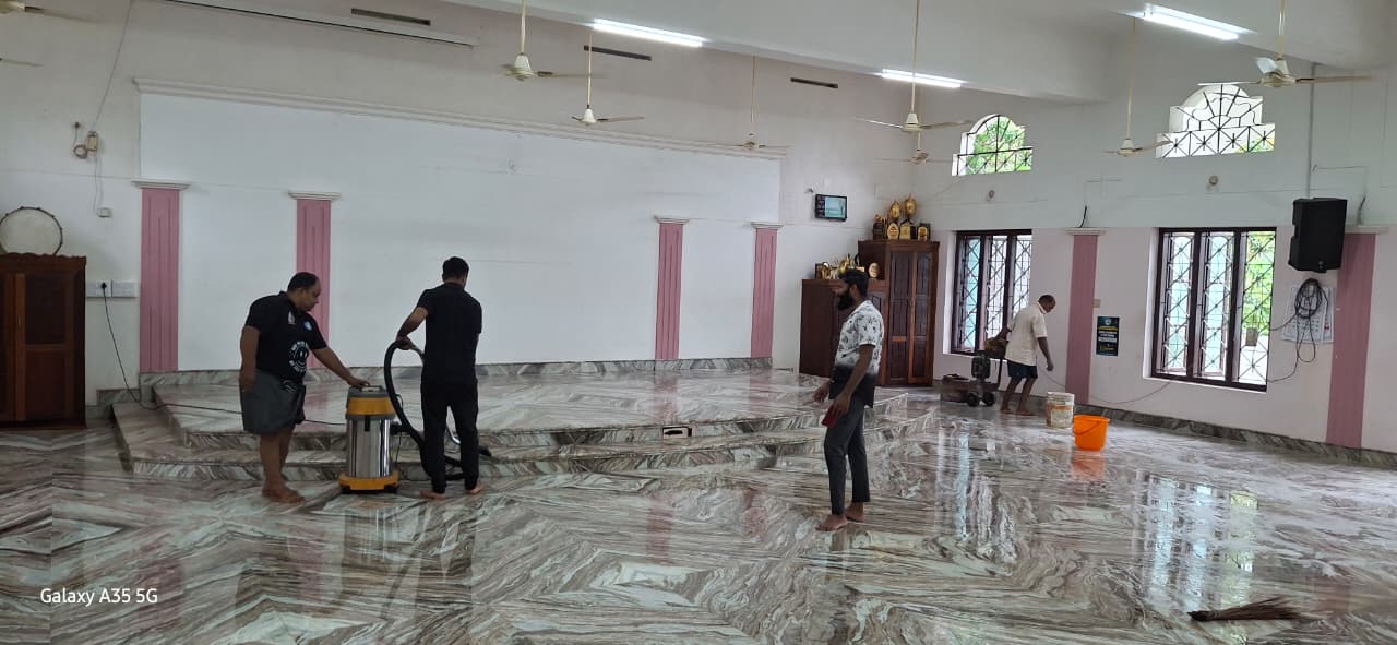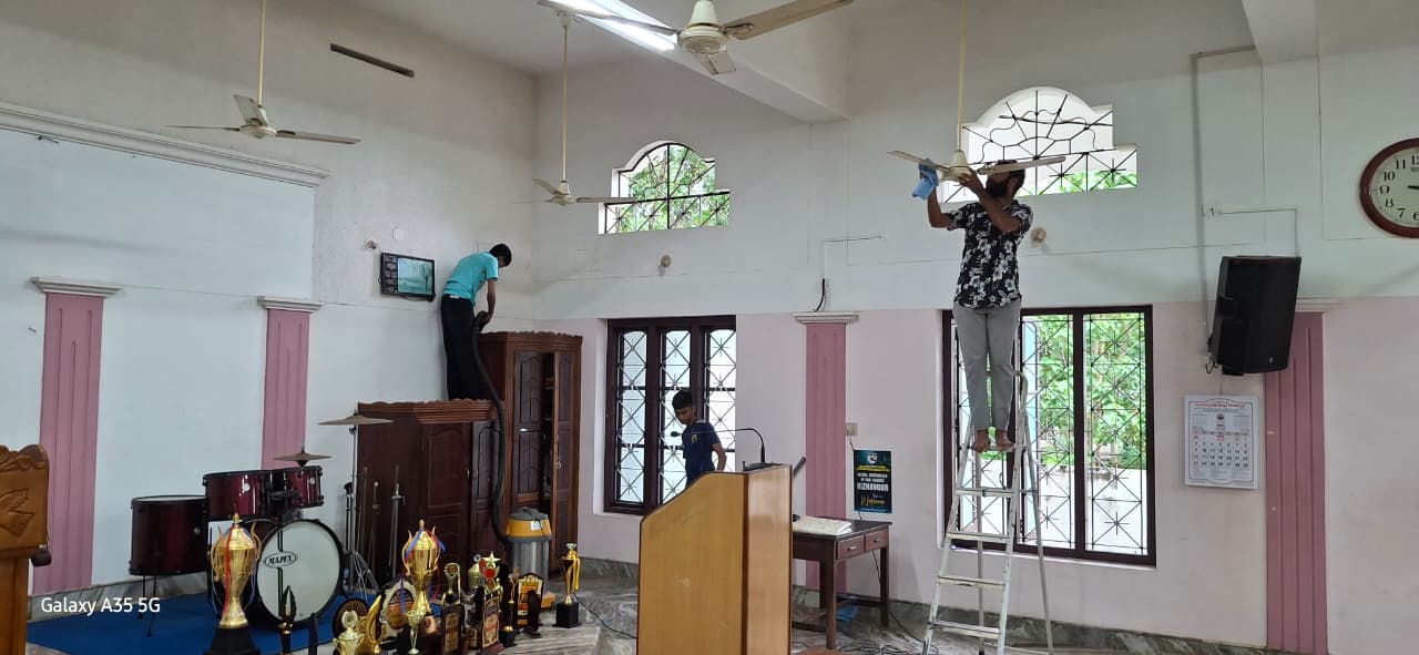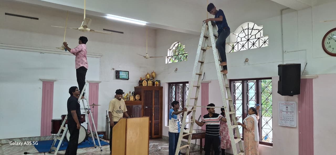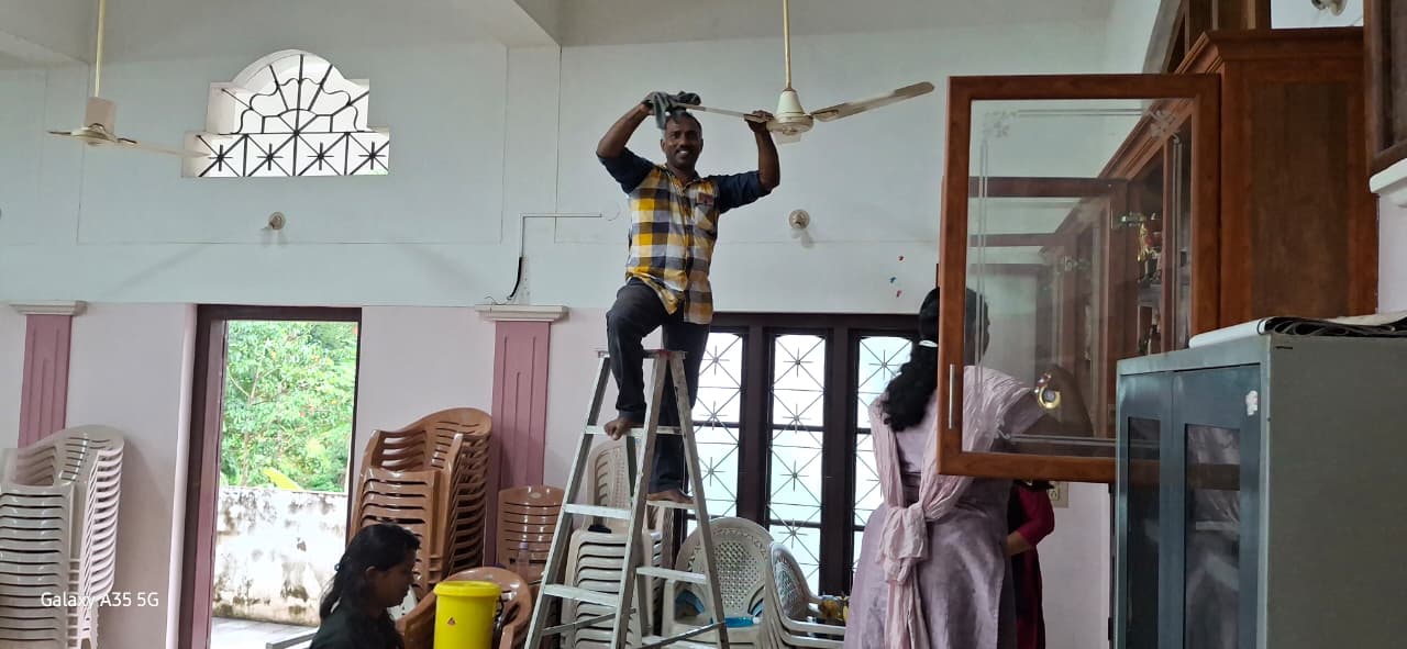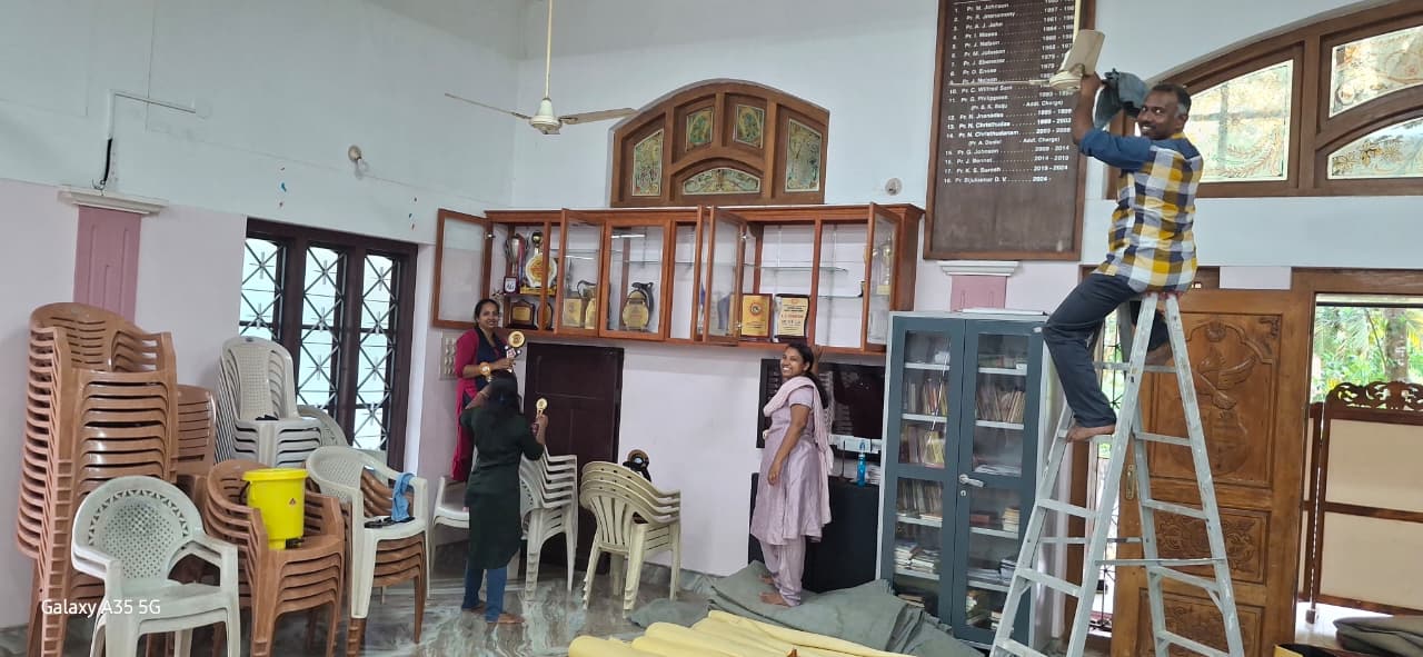 സഭയിലെ സി. എ. കമ്മിറ്റിയുടെ നേതൃത്വത്തില് 2025 നവംബര് 23, 24 തീയതികളില് സഭാഹാളും പരിസരവും വൃത്തിയാക്കി. പ്രായഭേദമെന്യേ ധാരാളം പേരുടെ പങ്കാളിത്തം ഉണ്ടായിരുന്നു. 24-ാം തീയതി മച്ചേല് ബ്രൈറ്റ് സഹോദരന്റെ നേതൃത്വത്തില് സഭാഹാളിന്റെ തറയിലെ മാര്ബിള് മെഷീന് ഉപയോഗിച്ച് വൃത്തിയാക്കി. സഭാഹാളിനു മുന്നിലെ ബോര്ഡ്, ഗേറ്റ്, സഭാഹാള്, ഒന്നാമത്തെ നില എന്നിവിടങ്ങളില് ക്ലീനിംഗ് നടത്തി. കടന്നുവന്നവര്ക്ക് ആഹാരവും സി. എ. കമ്മിറ്റി ക്രമീകരിച്ചിരുന്നു.