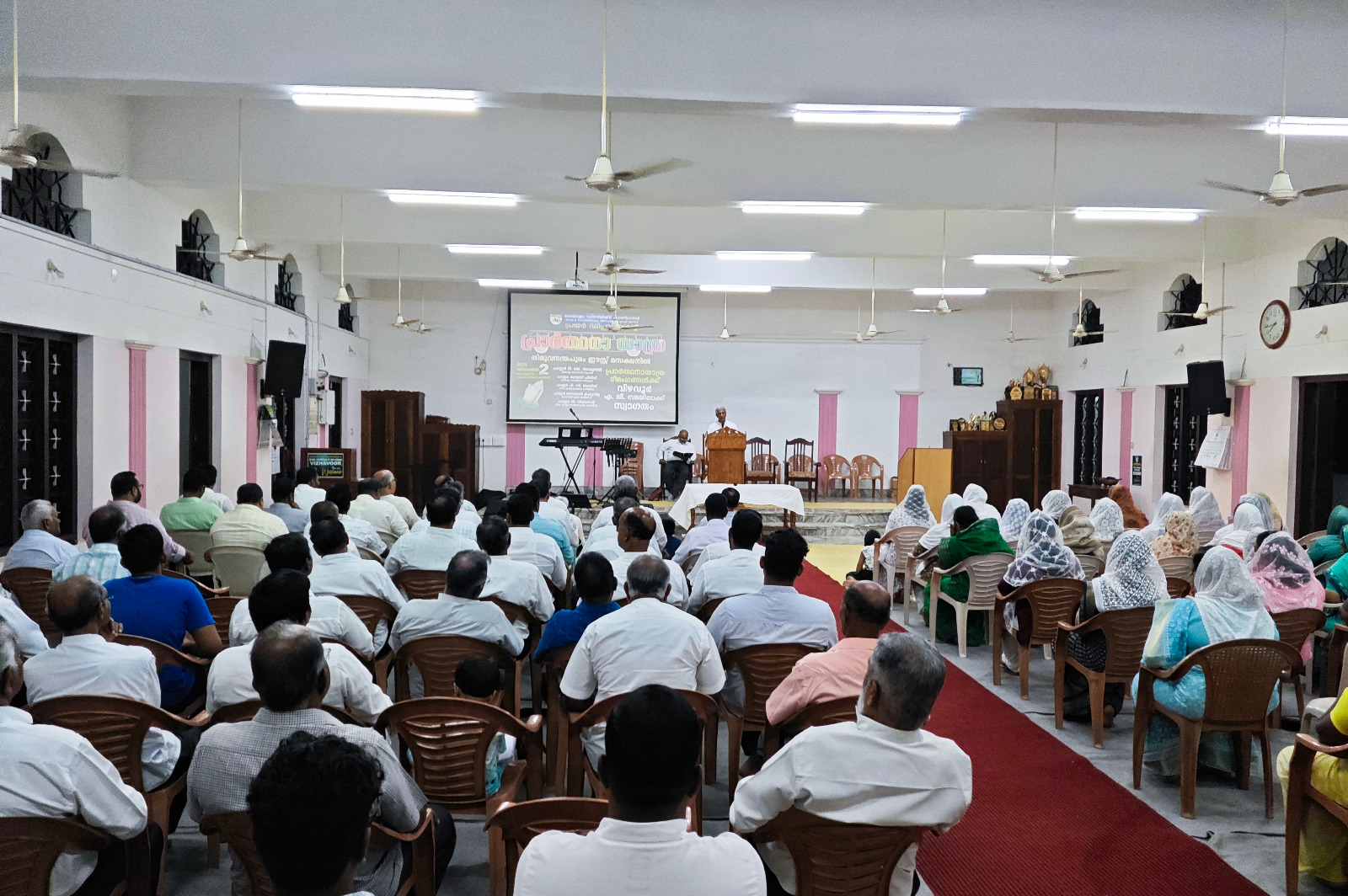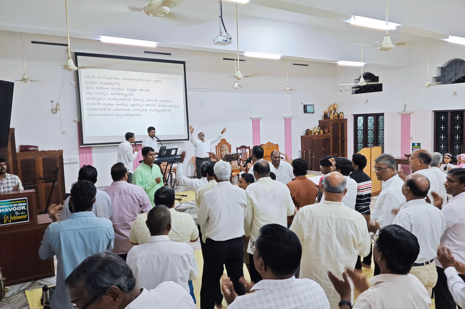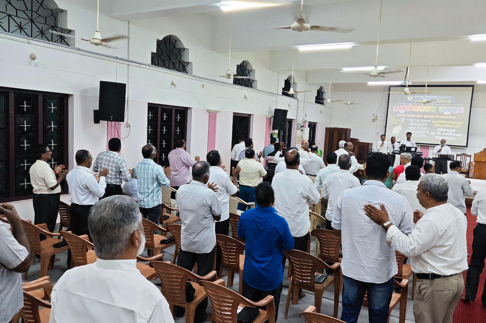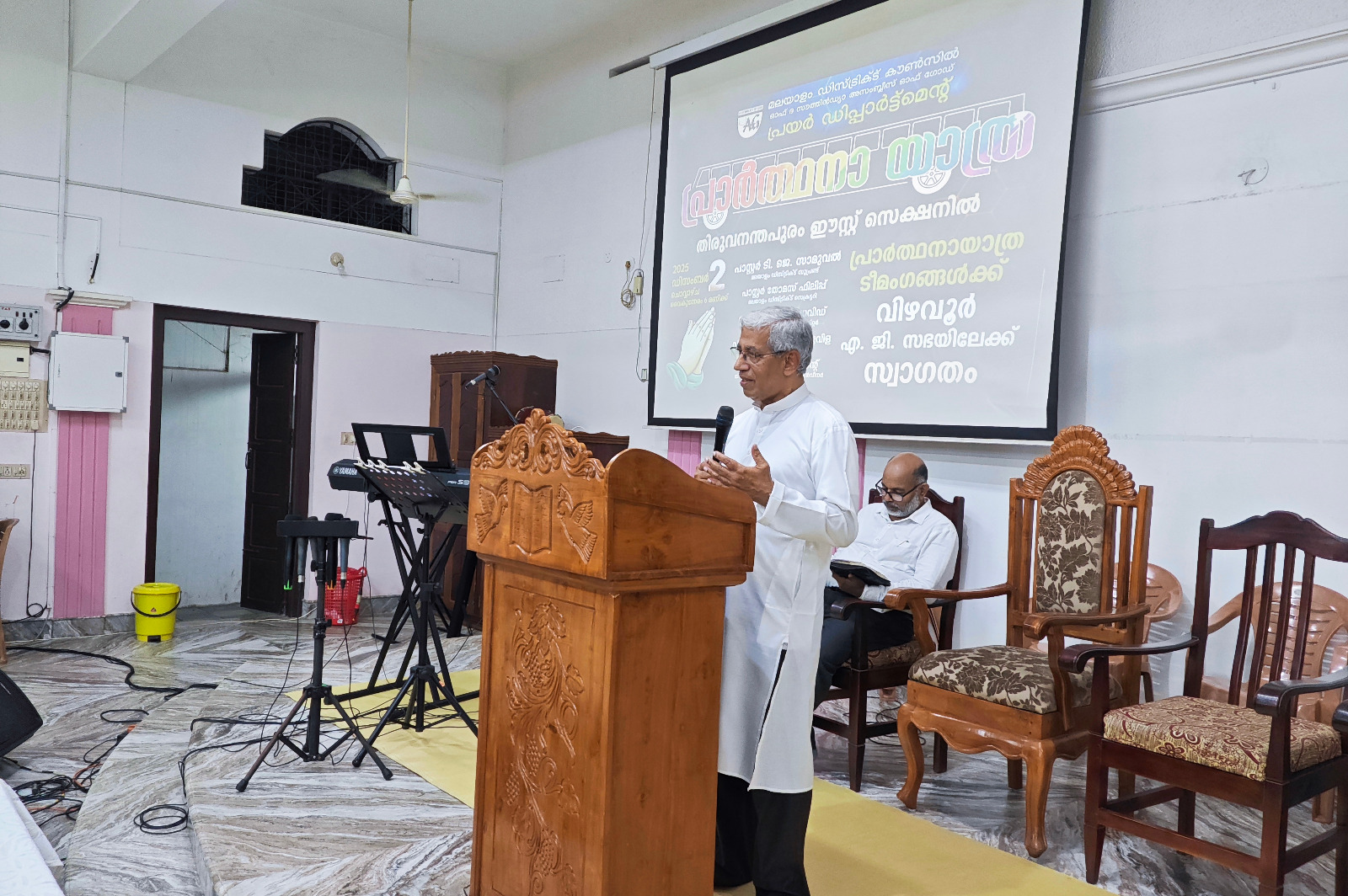 എ. ജി. മലയാളം ഡിസ്ട്രിക്ട് എക്സിക്യൂട്ടീവ് കമ്മിറ്റിയുടെയും ഡിസ്ട്രിക്ട് പ്രയര് ഡിപ്പാര്ട്ട്മെന്റിന്റെയും നേതൃത്വത്തില് 2025 ഡിസംബര് 1 മുതല് 13 വരെ തിരുവനന്തപുരം മുതല് തൃശ്ശൂര് വരെ നടന്ന പ്രാര്ത്ഥനായാത്ര ഡിസംബര് 2-ന് വൈകുന്നേരം വിഴവൂര് സഭയില് എത്തിച്ചേര്ന്നു. സൂപ്രണ്ട് പാസ്റ്റര് ടി. ജെ. സാമുവലും പ്രയര് ഡിപ്പാര്ട്ട്മെന്റ് കണ്വീനര് പാസ്റ്റര് ജോമോന് കുരുവിളയും സഭയില് നടന്ന മീറ്റിംഗിന് നേതൃത്വം നല്കി. തിരുവനന്തപുരം ഈസ്റ്റ് സെക്ഷന് പ്രസ്ബിറ്റര് പാസ്റ്റര് പി. ഡി. ഡേവിഡ് അദ്ധ്യക്ഷത വഹിച്ചു. 22 പേരടങ്ങുന്ന ടീം മലയാളം ഡിസ്ട്രിക്ടിന് സ്പോണ്സറായി ലഭിച്ച പുതിയ ബസ്സിലായിരുന്നു ഈ പര്യടനം നടത്തിയത്. 2-ാം തീയതി വൈകുന്നേരം 6 മുതല് 9 വരെ സഭയില് നടന്ന മീറ്റിംഗില് ദക്ഷിണമേഖലയിലെ അനേകം ദൈവമക്കള് പങ്കെടുത്തു. സഭാശുശ്രൂഷകന് പാസ്റ്റര് ബിജുകുമാര് ഡി. വി. യും ഈ പ്രാര്ത്ഥനാ ടീമില് അംഗമായിരുന്നു. കടന്നു വന്ന അതിഥികള്ക്ക് സഭയില് നിന്നും ഭക്ഷണവും സഭയിലെ വിവിധ ഭവനങ്ങളില് താമസവും ഒരുക്കിയിരുന്നു.