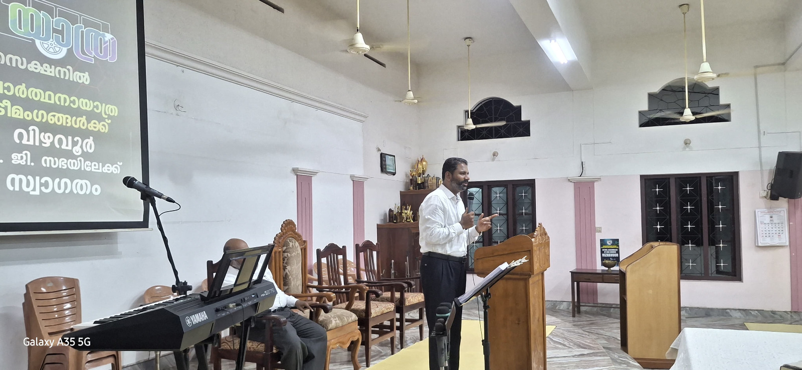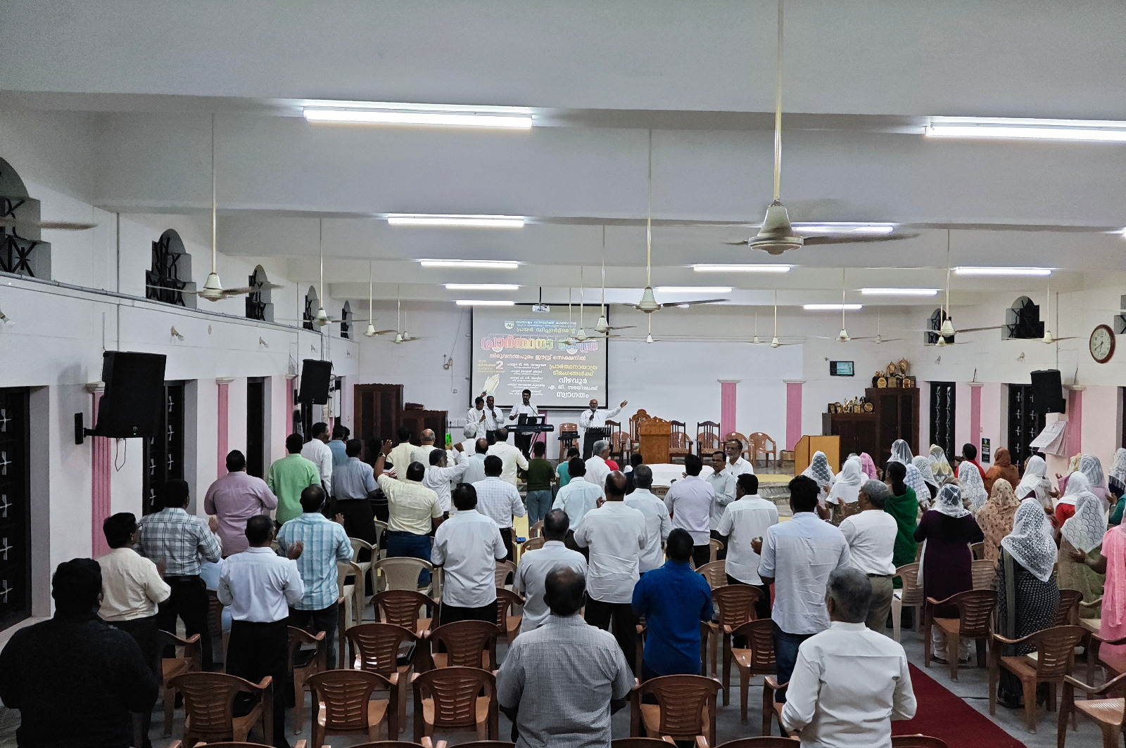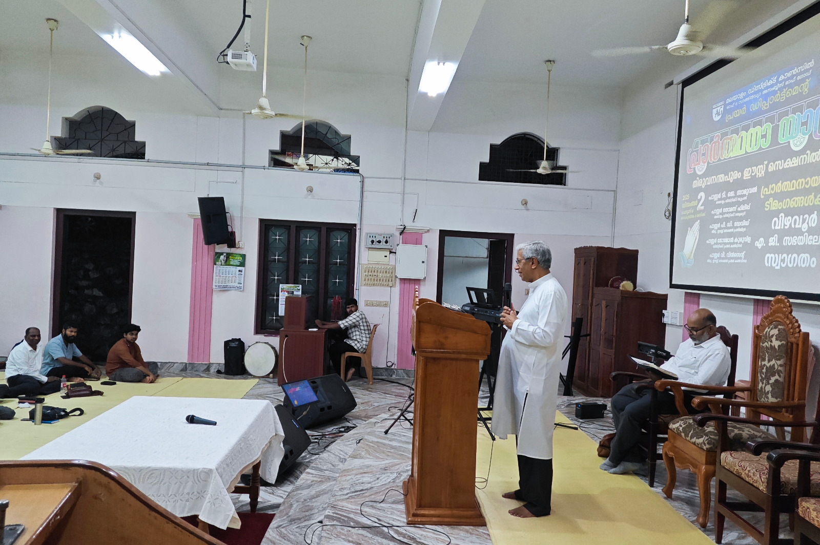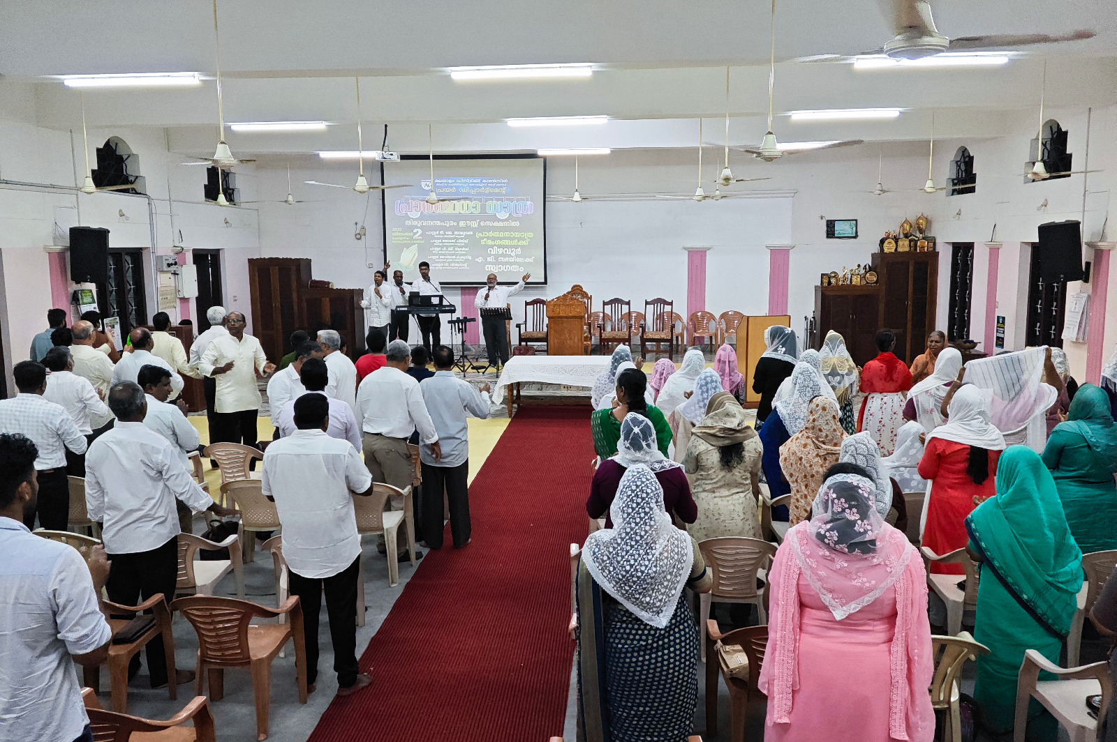 എ. ജി. മലയാളം ഡിസ്ട്രിക്ട് എക്സിക്യൂട്ടീവ് കമ്മിറ്റിയുടെയും ഡിസ്ട്രിക്ട് പ്രയര് ഡിപ്പാര്ട്ട്മെന്റിന്റെയും നേതൃത്വത്തില് 2025 ഡിസംബര് 1 മുതല് 13 വരെ തിരുവനന്തപുരം മുതല് തൃശ്ശൂര് വരെ നടന്ന പ്രാര്ത്ഥനായാത്ര ഡിസംബര് 2-ന് വൈകുന്നേരം വിഴവൂര് സഭയില് എത്തിച്ചേര്ന്നു. സൂപ്രണ്ട് പാസ്റ്റര് ടി. ജെ. സാമുവലും പ്രയര് ഡിപ്പാര്ട്ട്മെന്റ് കണ്വീനര് പാസ്റ്റര് ജോമോന് കുരുവിളയും സഭയില് നടന്ന മീറ്റിംഗിന് നേതൃത്വം നല്കി. തിരുവനന്തപുരം ഈസ്റ്റ് സെക്ഷന് പ്രസ്ബിറ്റര് പാസ്റ്റര് പി. ഡി. ഡേവിഡ് അദ്ധ്യക്ഷത വഹിച്ചു. 22 പേരടങ്ങുന്ന ടീം മലയാളം ഡിസ്ട്രിക്ടിന് സ്പോണ്സറായി ലഭിച്ച പുതിയ ബസ്സിലായിരുന്നു ഈ പര്യടനം നടത്തിയത്. 2-ാം തീയതി വൈകുന്നേരം 6 മുതല് 9 വരെ സഭയില് നടന്ന മീറ്റിംഗില് ദക്ഷിണമേഖലയിലെ അനേകം ദൈവമക്കള് പങ്കെടുത്തു. സഭാശുശ്രൂഷകന് പാസ്റ്റര് ബിജുകുമാര് ഡി. വി. യും ഈ പ്രാര്ത്ഥനാ ടീമില് അംഗമായിരുന്നു. കടന്നു വന്ന അതിഥികള്ക്ക് സഭയില് നിന്നും ഭക്ഷണവും സഭയിലെ വിവിധ ഭവനങ്ങളില് താമസവും ഒരുക്കിയിരുന്നു.