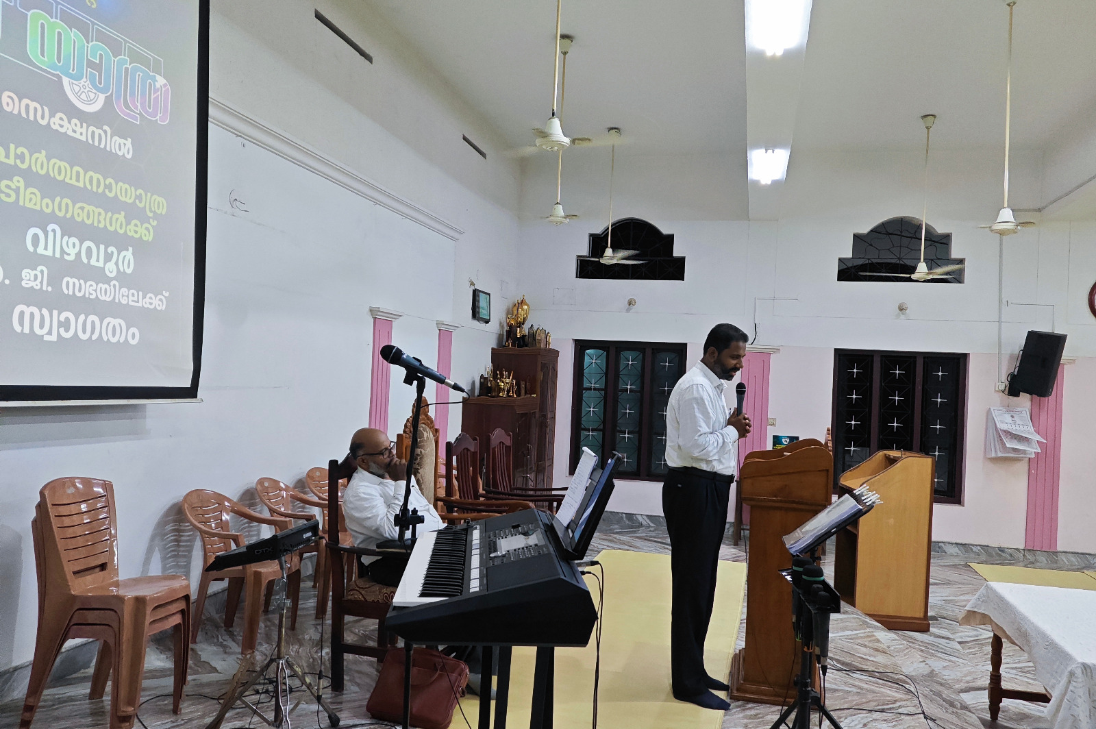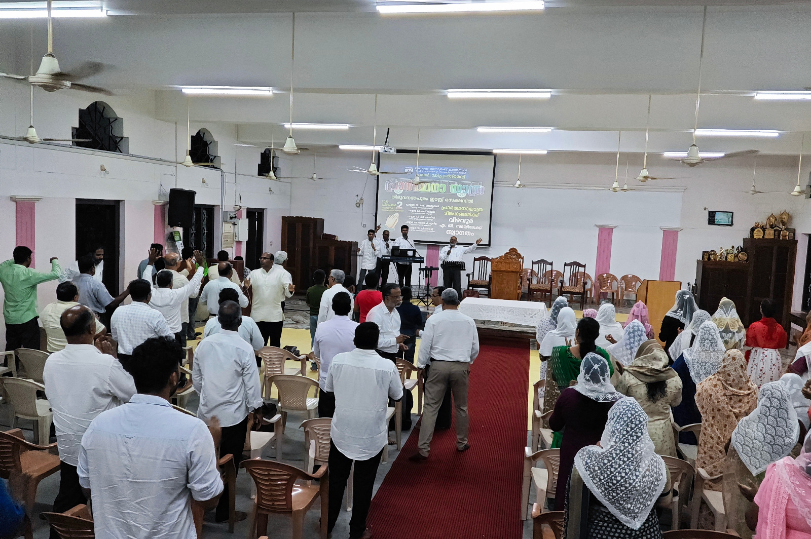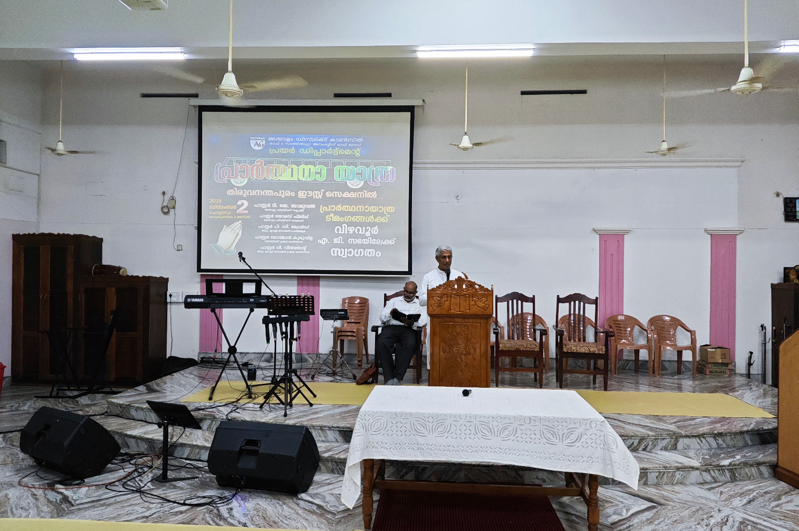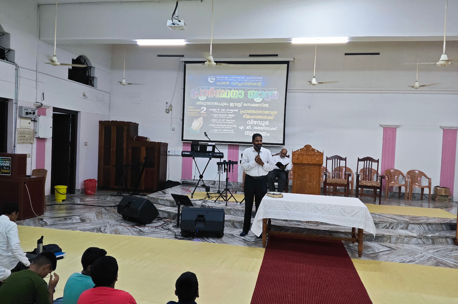 എ. ജി. മലയാളം ഡിസ്ട്രിക്ട് എക്സിക്യൂട്ടീവ് കമ്മിറ്റിയുടെയും ഡിസ്ട്രിക്ട് പ്രയര് ഡിപ്പാര്ട്ട്മെന്റിന്റെയും നേതൃത്വത്തില് 2025 ഡിസംബര് 1 മുതല് 13 വരെ തിരുവനന്തപുരം മുതല് തൃശ്ശൂര് വരെ നടന്ന പ്രാര്ത്ഥനായാത്ര ഡിസംബര് 2-ന് വൈകുന്നേരം വിഴവൂര് സഭയില് എത്തിച്ചേര്ന്നു. സൂപ്രണ്ട് പാസ്റ്റര് ടി. ജെ. സാമുവലും പ്രയര് ഡിപ്പാര്ട്ട്മെന്റ് കണ്വീനര് പാസ്റ്റര് ജോമോന് കുരുവിളയും സഭയില് നടന്ന മീറ്റിംഗിന് നേതൃത്വം നല്കി. തിരുവനന്തപുരം ഈസ്റ്റ് സെക്ഷന് പ്രസ്ബിറ്റര് പാസ്റ്റര് പി. ഡി. ഡേവിഡ് അദ്ധ്യക്ഷത വഹിച്ചു. 22 പേരടങ്ങുന്ന ടീം മലയാളം ഡിസ്ട്രിക്ടിന് സ്പോണ്സറായി ലഭിച്ച പുതിയ ബസ്സിലായിരുന്നു ഈ പര്യടനം നടത്തിയത്. 2-ാം തീയതി വൈകുന്നേരം 6 മുതല് 9 വരെ സഭയില് നടന്ന മീറ്റിംഗില് ദക്ഷിണമേഖലയിലെ അനേകം ദൈവമക്കള് പങ്കെടുത്തു. സഭാശുശ്രൂഷകന് പാസ്റ്റര് ബിജുകുമാര് ഡി. വി. യും ഈ പ്രാര്ത്ഥനാ ടീമില് അംഗമായിരുന്നു. കടന്നു വന്ന അതിഥികള്ക്ക് സഭയില് നിന്നും ഭക്ഷണവും സഭയിലെ വിവിധ ഭവനങ്ങളില് താമസവും ഒരുക്കിയിരുന്നു.