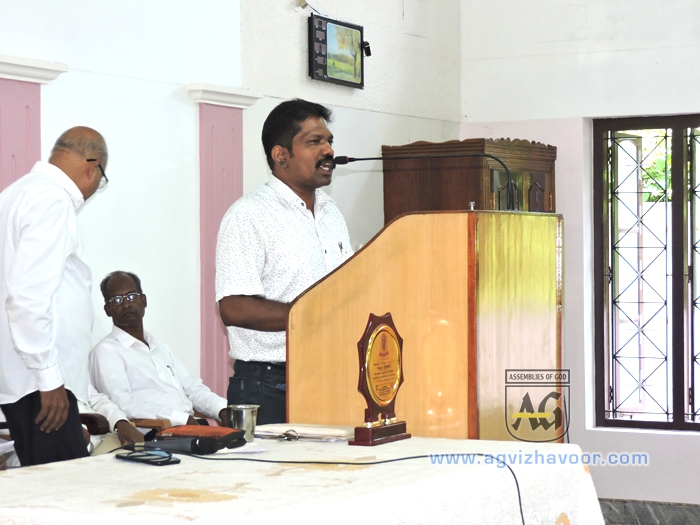 2019 മെയ് 19-നു സഭാഹാളില് നടന്ന പാസ്റ്റര് ജെ. ബെന്നറ്റിന്റെ വിഴിഞ്ഞം സഭയിലേക്കുള്ള യാത്രയയപ്പ് സമ്മേളനത്തില് നിന്നുള്ള ദൃശ്യങ്ങള്. പാസ്റ്റര് എന്. ക്രിസ്തുദാസ് അദ്ധ്യക്ഷത വഹിച്ചു. അന്നേദിവസം തന്നെ പാസ്റ്റര് കെ. എസ്. സുരേഷ് രണ്ടാംചിറ സഭയില് നിന്നും വിഴവൂര് സഭയുടെ ചാര്ജ്ജ് എടുത്തു.