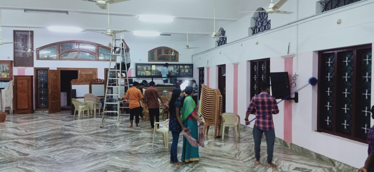 2019 ഒക്ടോബര് 21-നു നടന്ന സഭാഹാള് വൃത്തിയാക്കുന്നതിന്റെ ദൃശ്യങ്ങള്